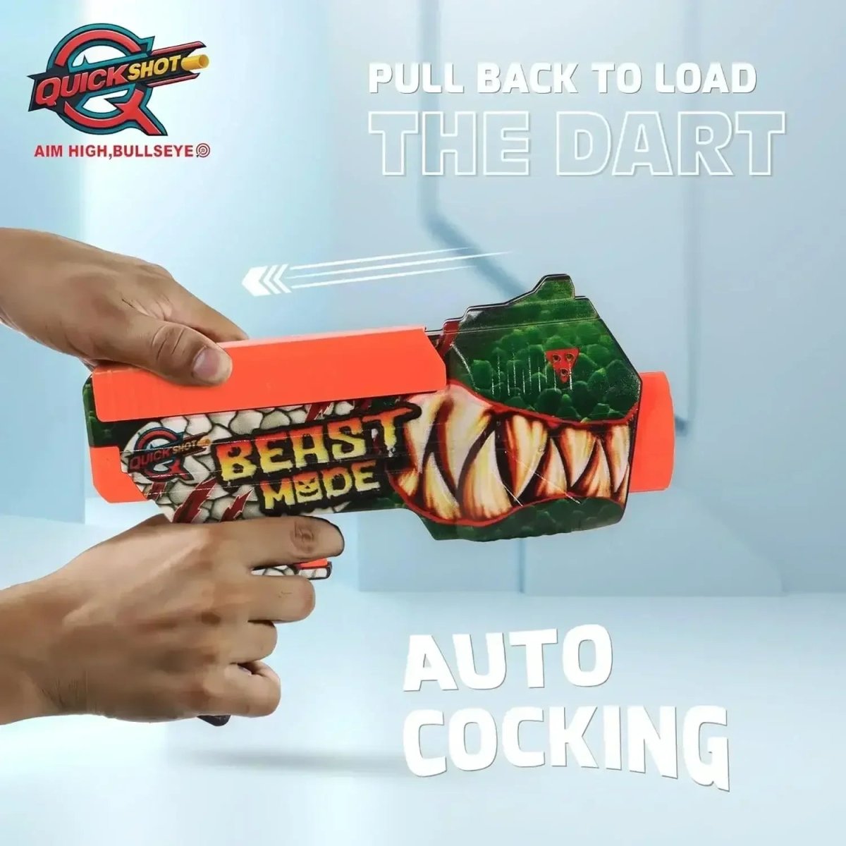 The Quickshot Beast is not just about firing darts—it’s about skill, coordination, and friendly competition. Its graffiti-inspired design gives it a bold, urban edge that kids will love showing off. The ergonomic handle ensures a comfortable grip during extended play sessions, while its quick-load firing system keeps the action going without breaks. Whether it’s backyard battles, solo target practice, or team missions, the Quickshot Beast is built to deliver reliable fun every time.