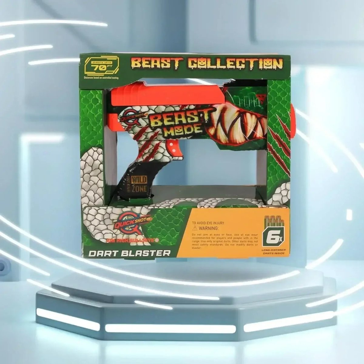 Get ready for unstoppable fun and power-packed action with the Quickshot Beast Foam Dart Blaster, the ultimate choice for young adventure lovers! Engineered for precision, style, and long-range performance, this dart blaster takes excitement to a whole new level. Designed for children aged 8 years and above, it combines a thrilling 70-feet shooting range with smooth, easy handling for fast-paced play both indoors and outdoors.